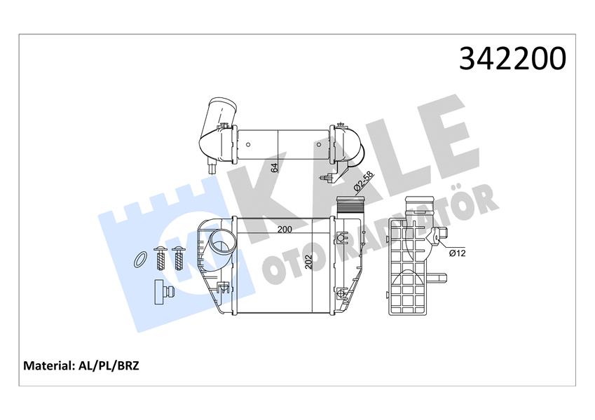 TURBO RADYATÖRÜ INTERCOOLER A6 4F5. C6 AL/PL/BRZ 200x202x62